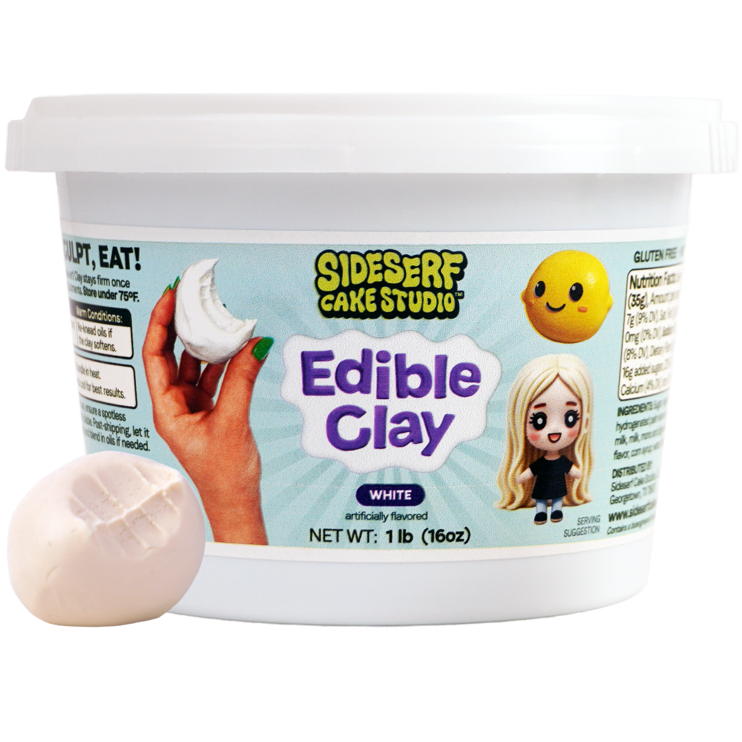 Logo, packaging design + copy, and Amazon listing content design + copy for Sideserf Cake Studio's product Edible Clay.