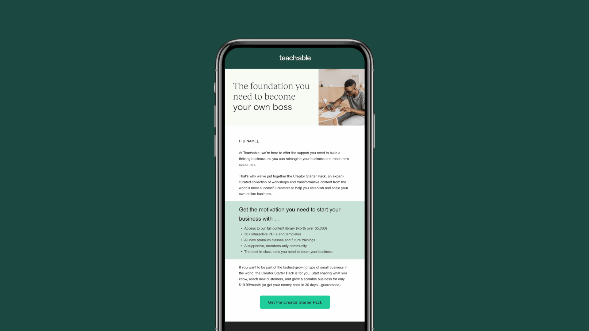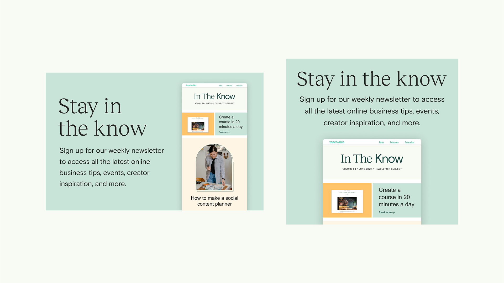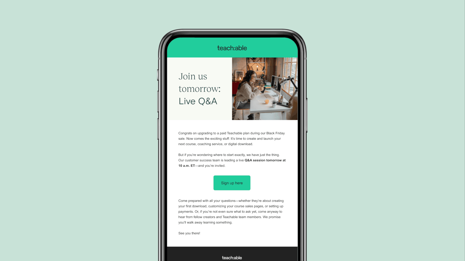 Production design — emails, pop ups, product updates, and gifs for Teachable.